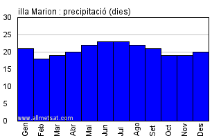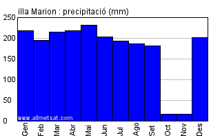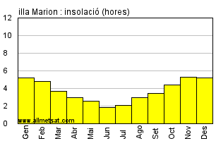 | Nombre mitjà mensual d'hores de sol al dia. |