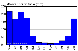 | Precipitació és qualsevol tipus d'aigua que cau sobre la superfície de la Terra. Les diferents formes de precipitació inclouen pluja, neu, aigua neu, i pluja congelada. mm/inch |